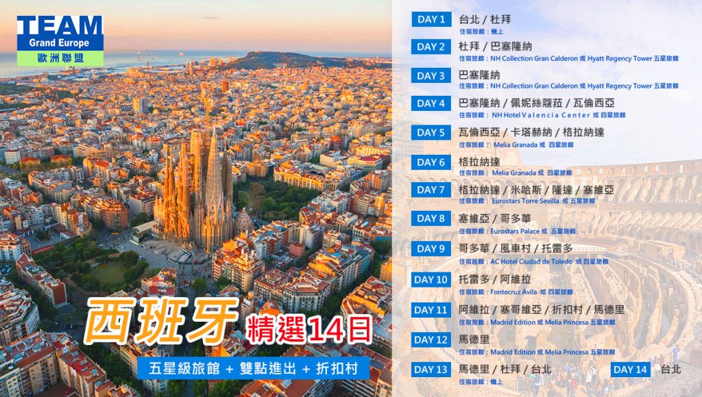 西班牙 精選14天|來電詢問